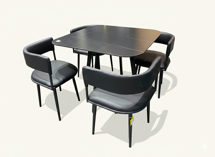 Modern Black Dining Set – 1 Table + 4 Chairs