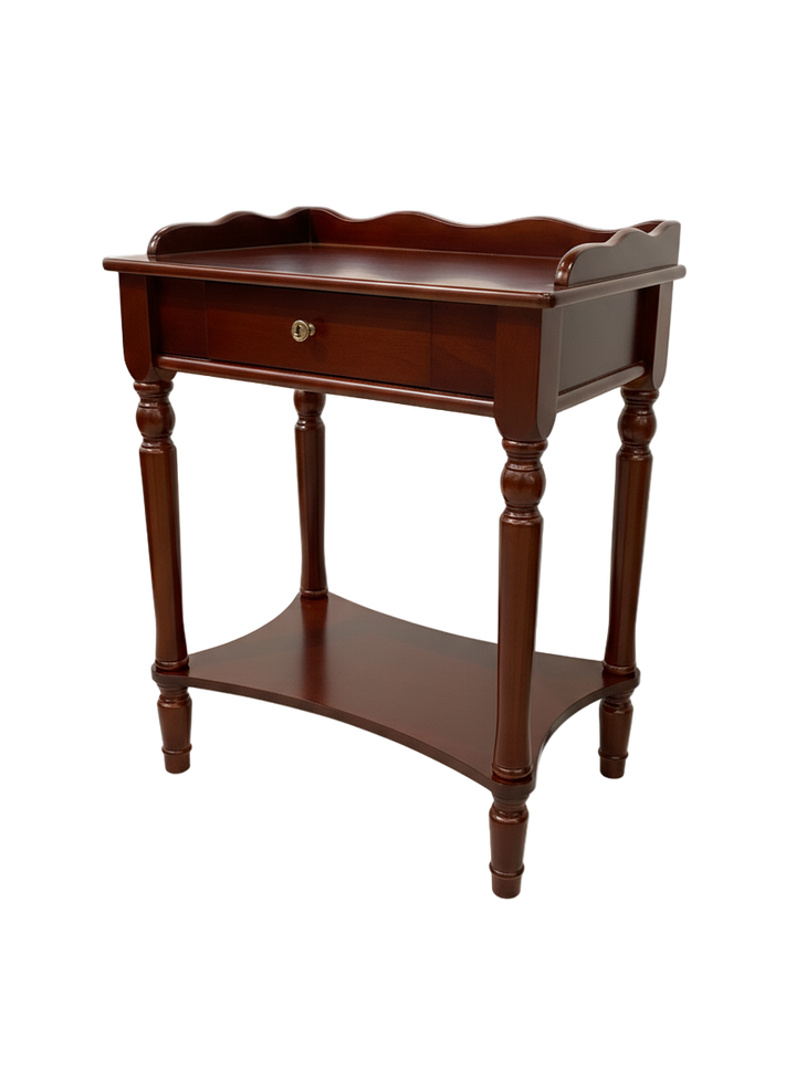 Add a touch of classic charm to your space with the ALVIDA Telephone Stand — a perfect blend of functionality and elegance. Crafted from rich mahogany wood in a warm MHG finish, this stand features a two-step design with a convenient drawer for added storage.