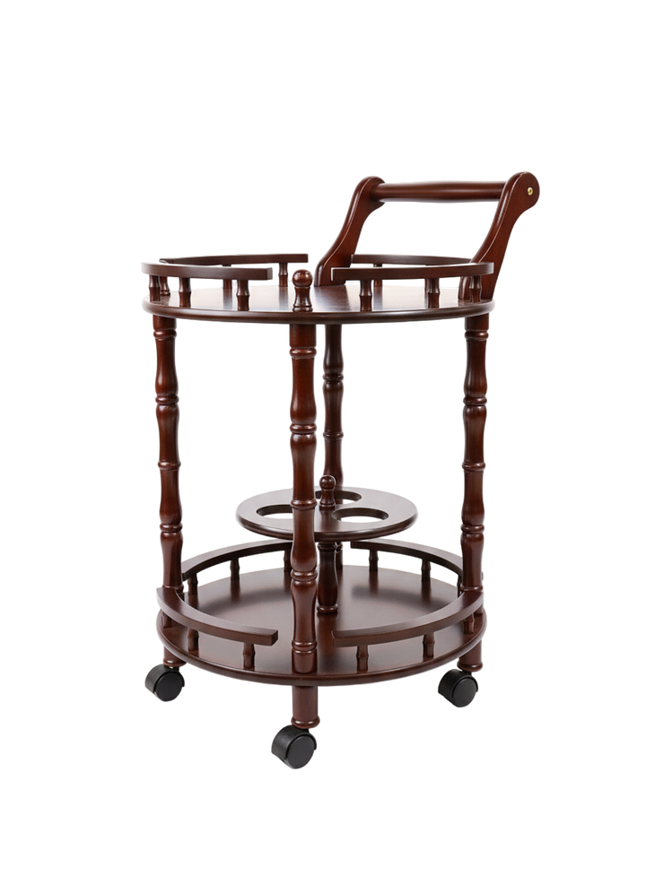 Serve in style with the ANDREW Serving Trolley, crafted from premium mahogany wood in a rich MHG finish. This elegant and versatile trolley doubles as a bar trolley, featuring a dedicated bottle holder for added convenience.