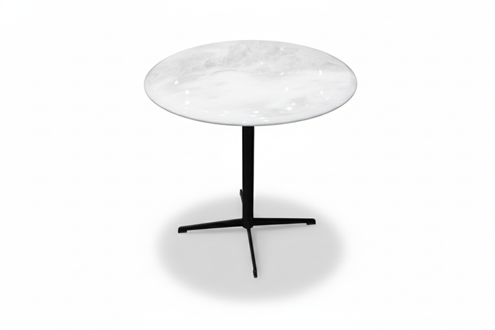 Bring contemporary elegance into your space with this stylish round café table, featuring a premium marble-finish top and a sleek black metal pedestal base. The smooth, glossy surface showcases subtle stone-like patterns, adding a luxurious touch while remaining easy to clean. Its compact, lightweight design makes it perfect for dining corners, cafés, balconies, or lounge setups.