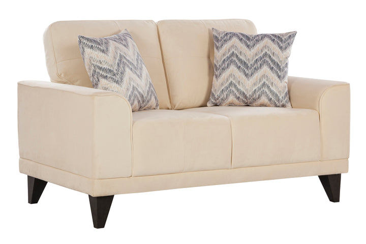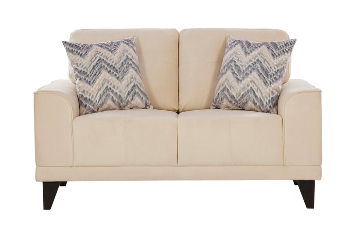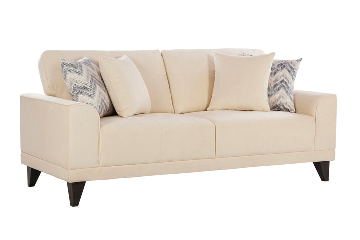 The generously cushioned backrest and broad armrests provide exceptional comfort, making it ideal for long conversations, family gatherings, or weekend relaxation. Supported by sturdy wooden legs, the sofa set offers long-lasting stability and a refined finish. The subtle beige tone complements all interior styles, while the patterned throw pillows add a stylish touch.