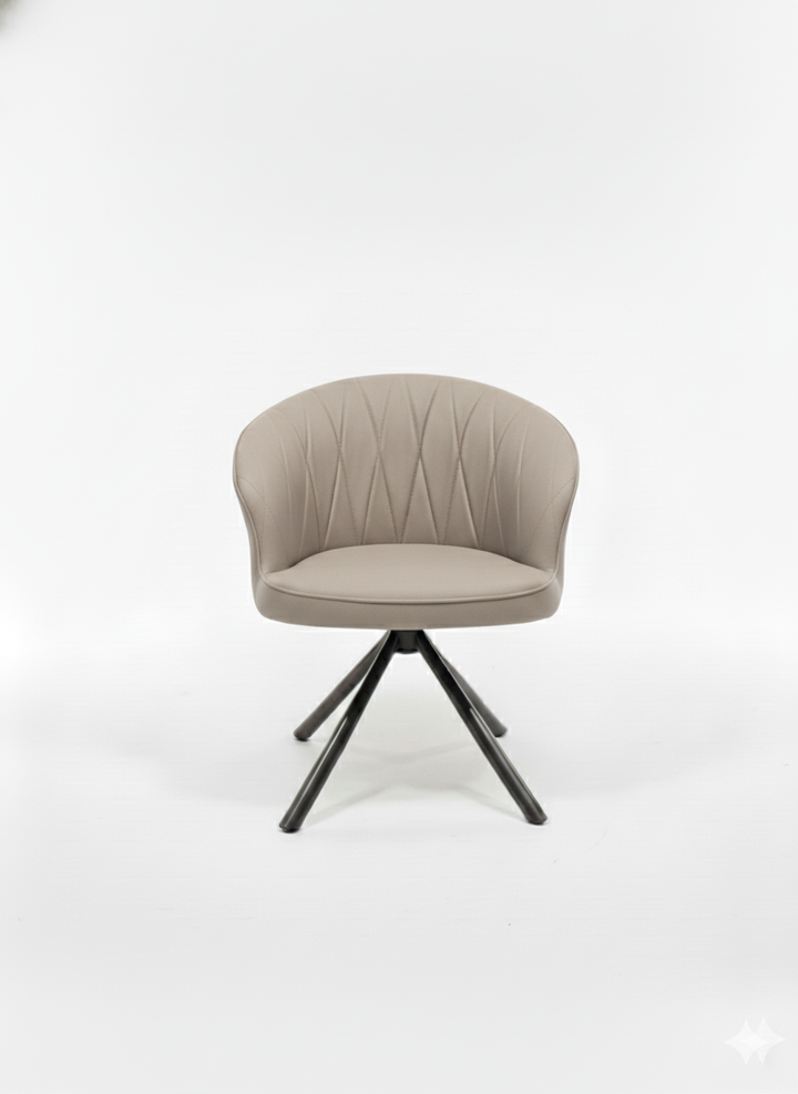 Sleek and understated, the Evan Revolving Chair in grey is a great choice for minimalist and contemporary décor. The ergonomic bucket seat with subtle stitched pattern hugs your back, while the 360° swivel base offers flexibility and ease of use. A smart option for meeting rooms, workstations, or modern dining areas.
