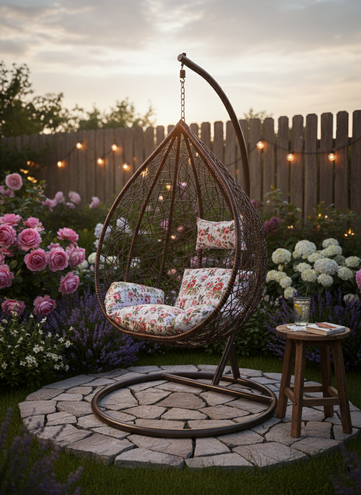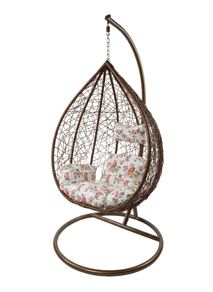 Made with a strong MS powder-coated frame and intricately woven wicker body, this swing combines durability with natural charm. The removable cushion ensures superior comfort and easy maintenance, making it ideal for everyday use.