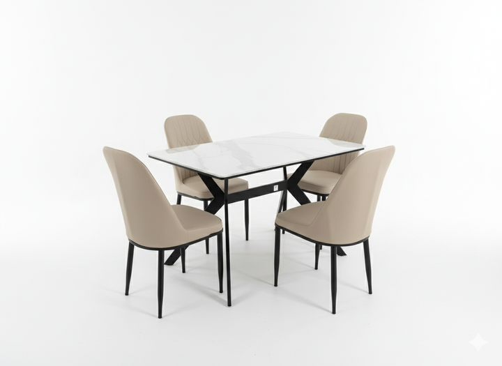 Bring home the perfect blend of style, comfort, and sophistication with the PICO DE Dining Set. Designed to elevate your dining space, this set features a premium ceramic tabletop in a crisp white finish, beautifully complemented by beige upholstered chairs for a warm and inviting look.