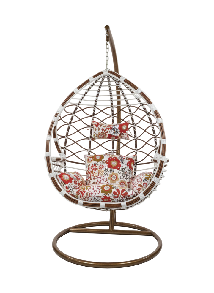 Crafted with a sturdy MS powder-coated frame and beautifully woven wicker body, this swing ensures long-lasting durability and timeless charm. The removable cushion provides plush comfort, while the built-in magazine holder adds a functional touch — keeping your favorite reads within reach as you relax.