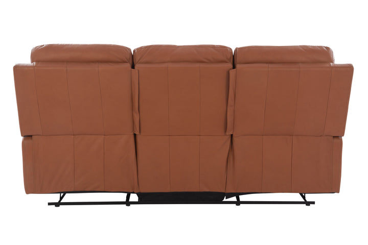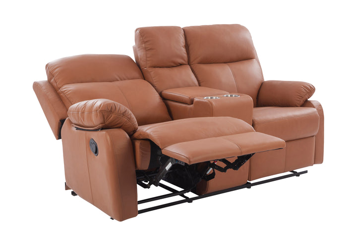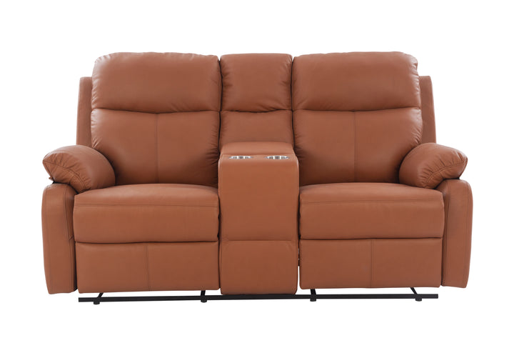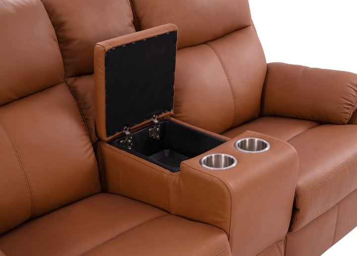 This elegant recliner features a rich brown leather finish, soft padded armrests, and ergonomic back support. The center console with cup holders and hidden storage adds a functional touch, making it perfect for movie nights, gaming, or day-to-day lounging.