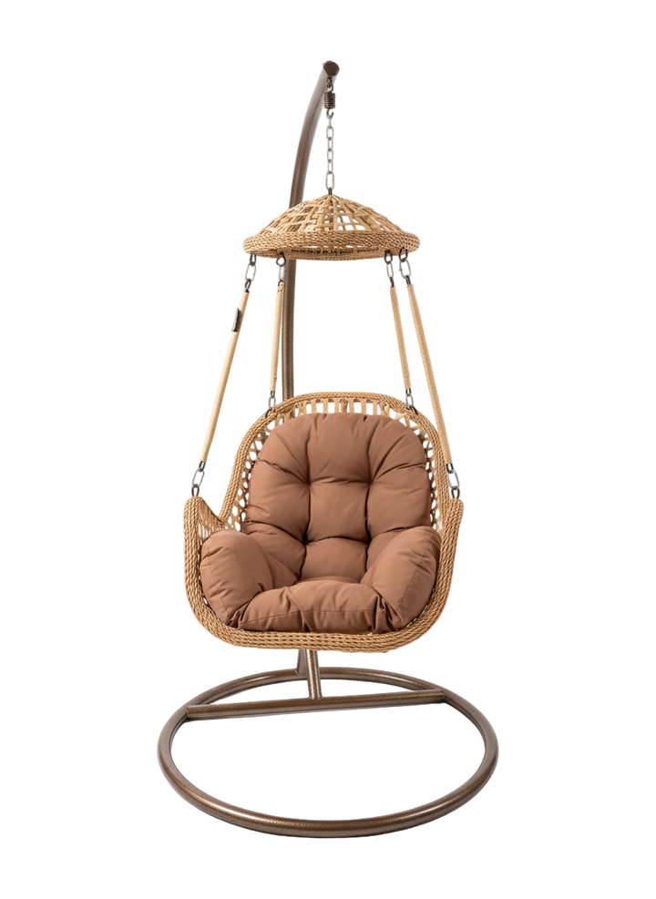 Crafted with a sturdy MS powder-coated frame and intricately handwoven wicker body, this swing blends durability with timeless elegance. The removable cushion provides plush seating comfort while allowing for easy cleaning and maintenance.