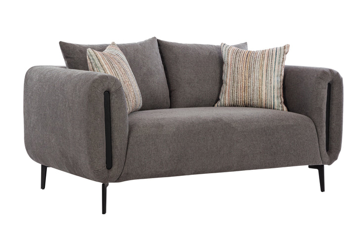 The contrasting black metal accents on the armrests add a bold, modern touch, making this sofa a standout piece in any contemporary home. Its deep seating and plush back cushions ensure excellent comfort, perfect for lounging, relaxing, or hosting guests.